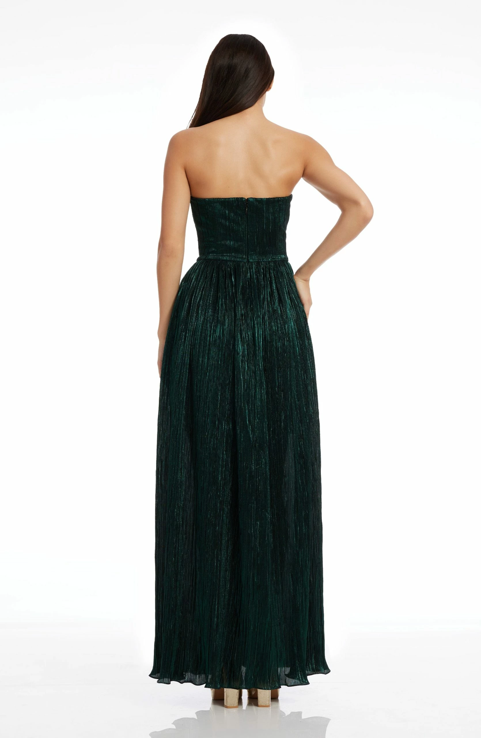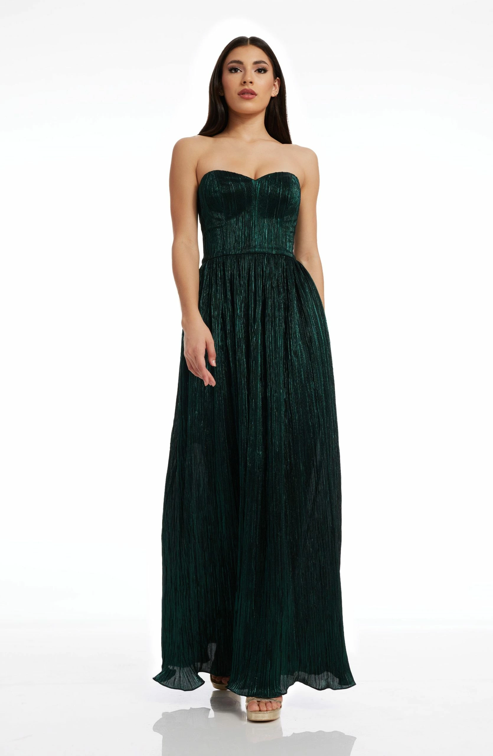 A timeless classic, the Audrina dress is a versatile and stylish choice for any formal event. Featuring a strapless, demi busiter design, this pleated gown is sure to turn heads. Crafted from luxe fabrics, this dress will provide all-day comfort and confidence.