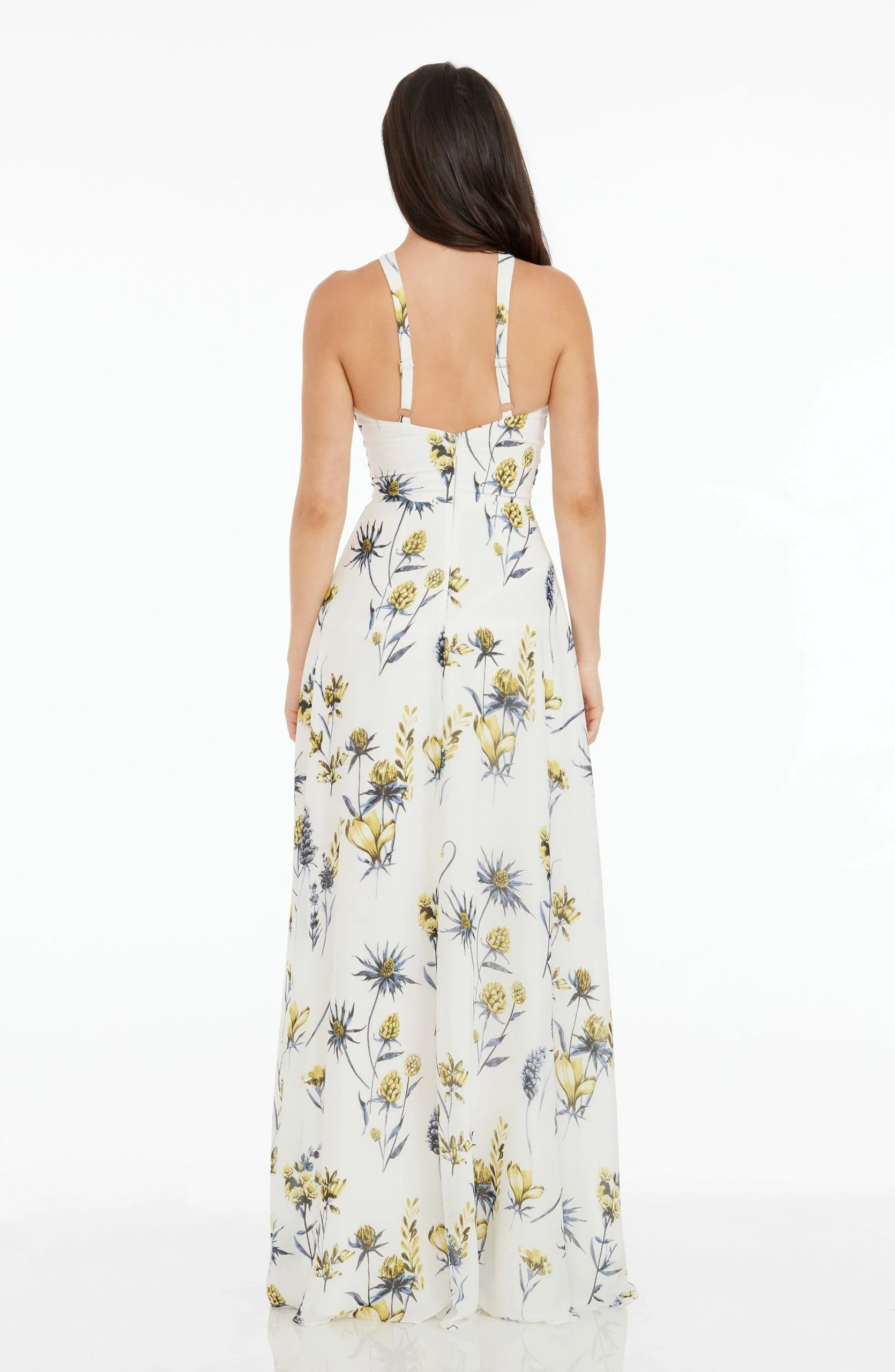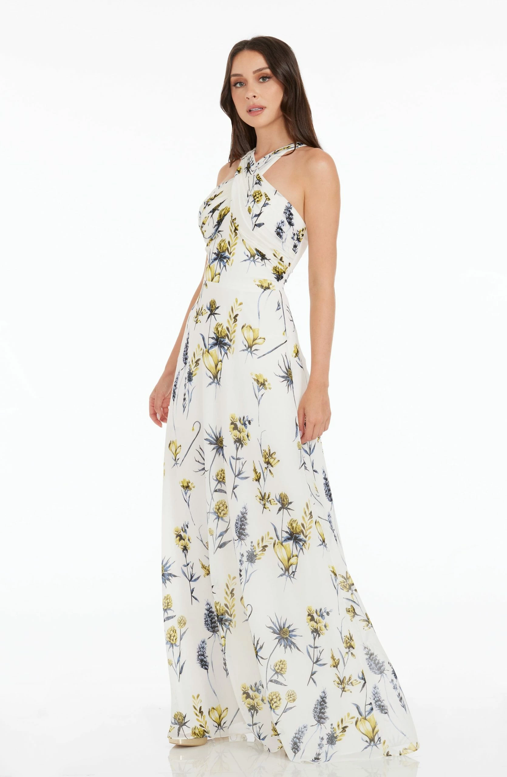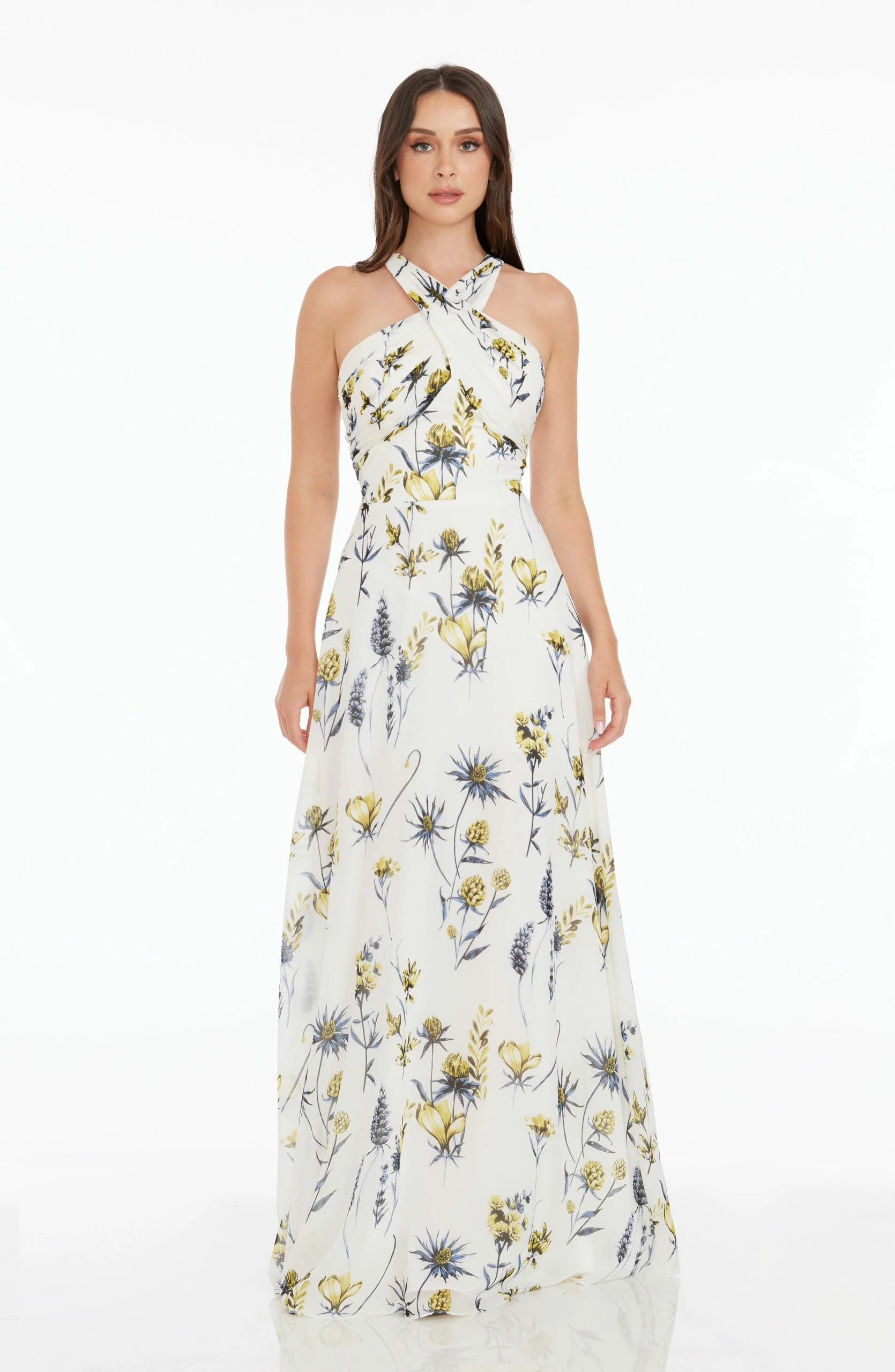 Create a striking look with the Brenna dress. Featuring a cross front halter neckline and A-line silhouette, this vintage floral bouquet print maxi dress is sure to boost your confidence. Boasting a romantic and timeless style, it’s perfect for special occasions.
