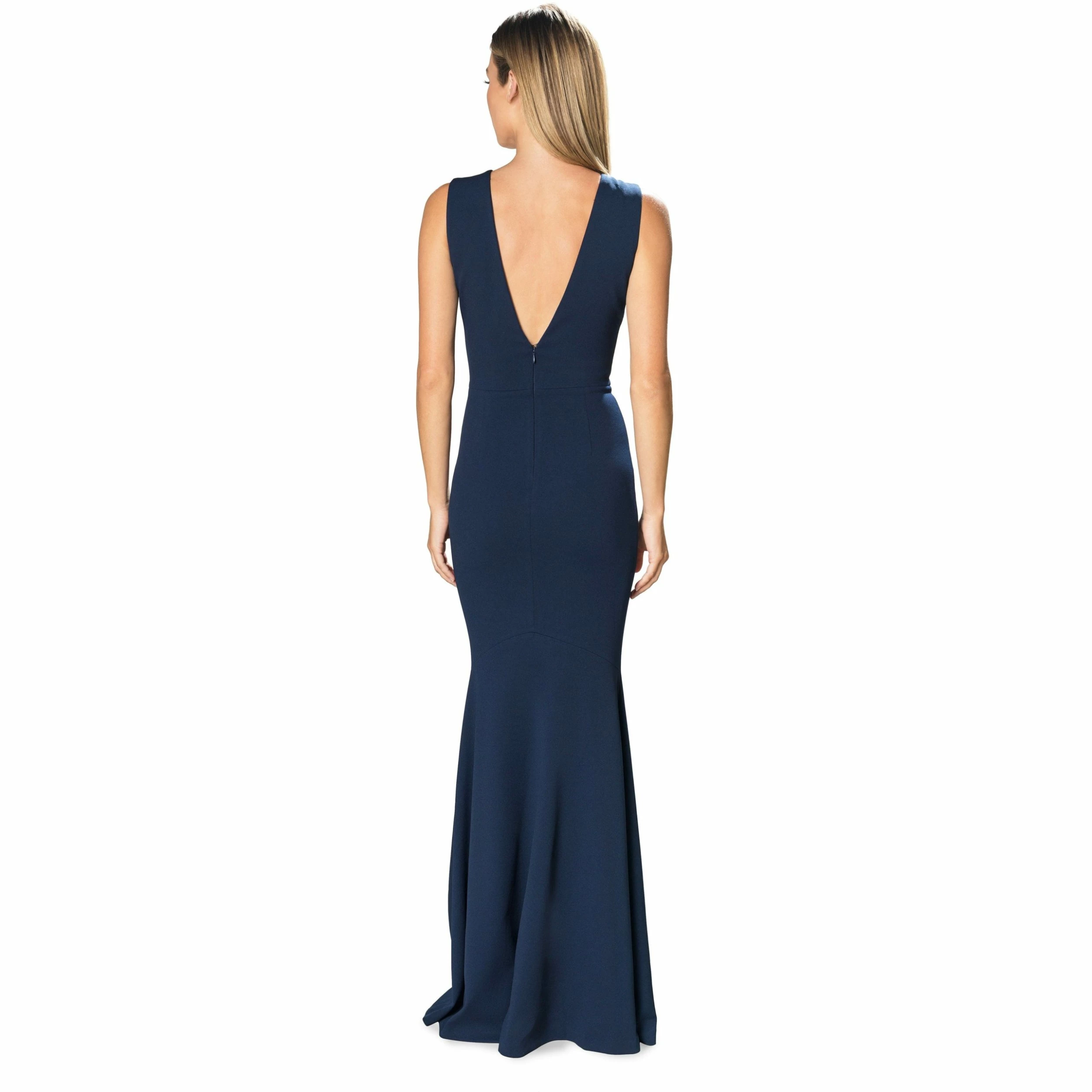 Turn heads with this sophisticated and figure-flattering gown. Leighton features a curve-hugging mermaid silhouette and a plunging backline. This is the perfect fit for when you need an elegant look.