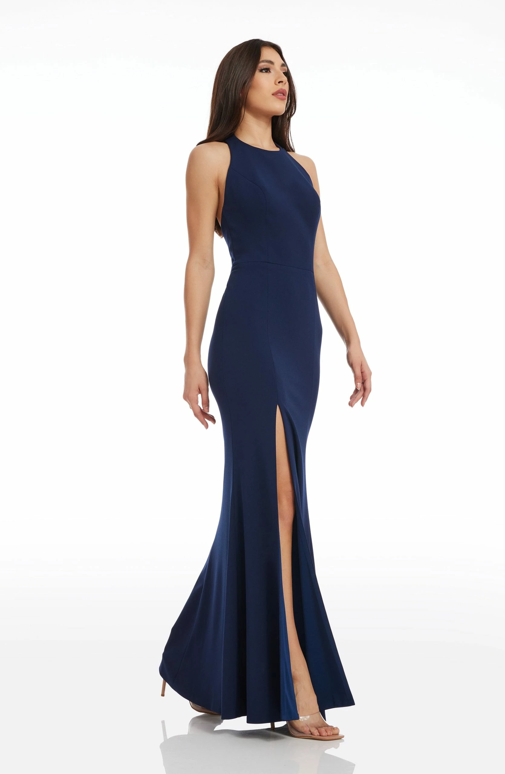 This Paige Dress makes a statement with its halter neckline and beautiful low back design. Its flattering front slit and mermaid cut provide you an unforgettable silhouette and unparalleled confidence for any special occasion.