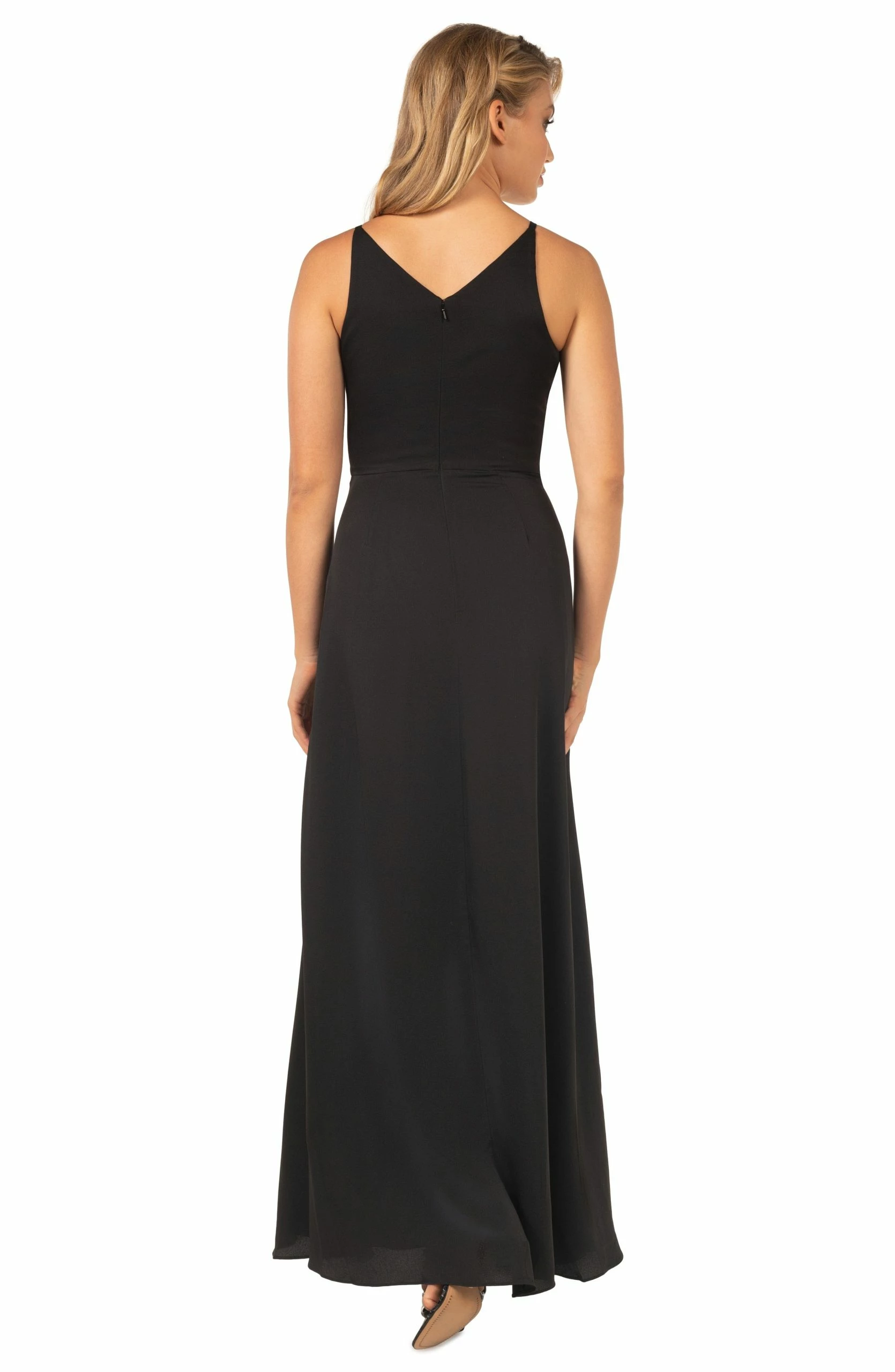 A plunging neckline and fit-and-flare profile give this gown timeless cachet, and side pockets hold your accessories while you go wild on the dance floor.
