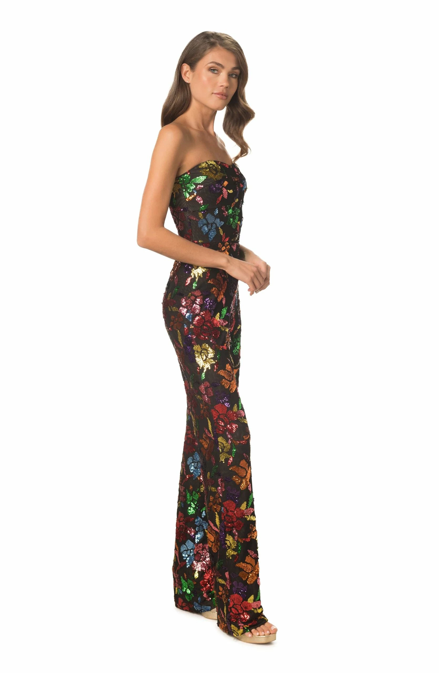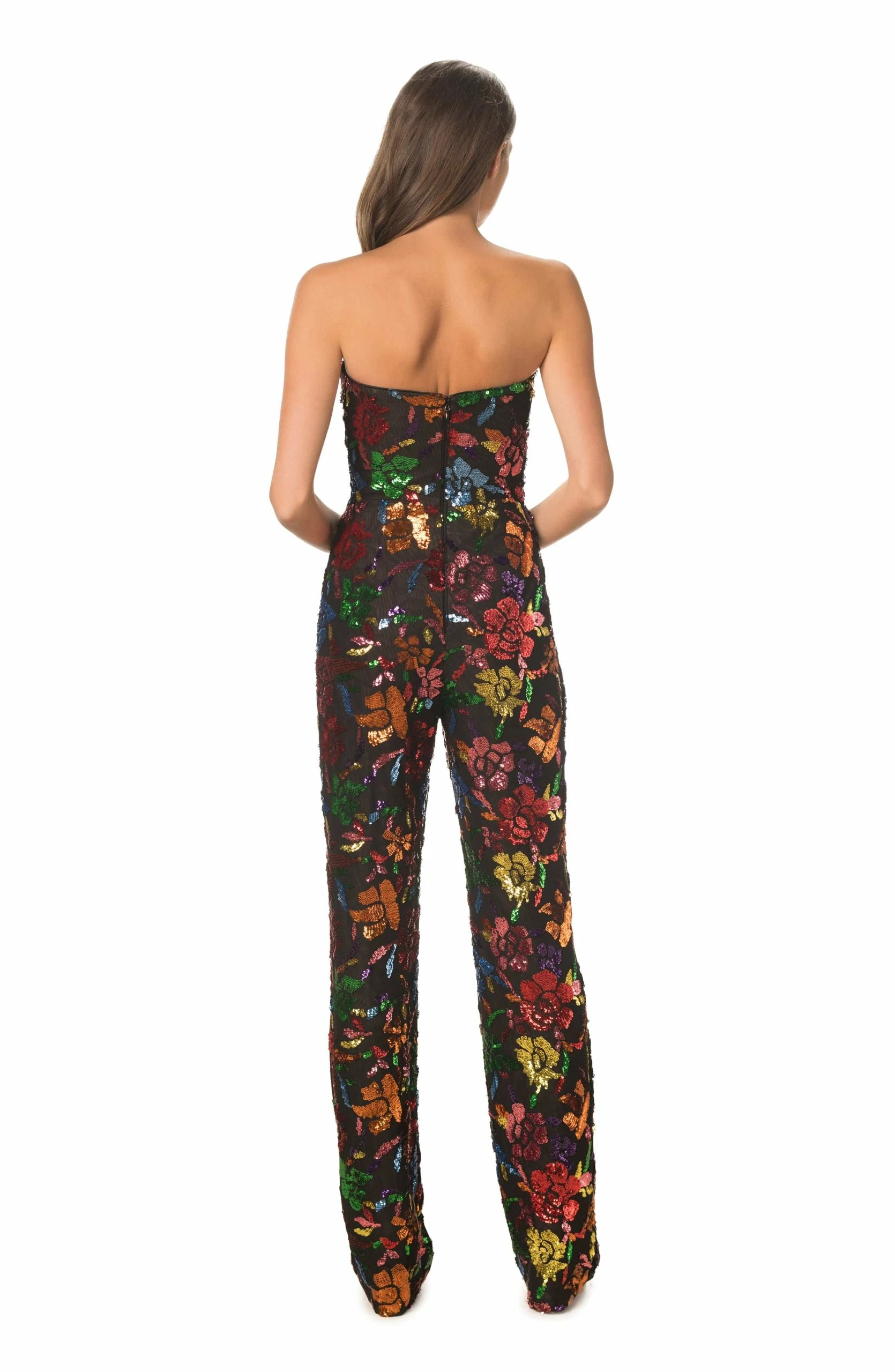 The Preston Jumpsuit is a show-stopping sequin jumpsuit with a strapless bustier top and a wide leg silhouette. The perfect look for any special occasion, the form-fitting top and elegantly flared leg offer an eye-catching combination of style and comfort.
