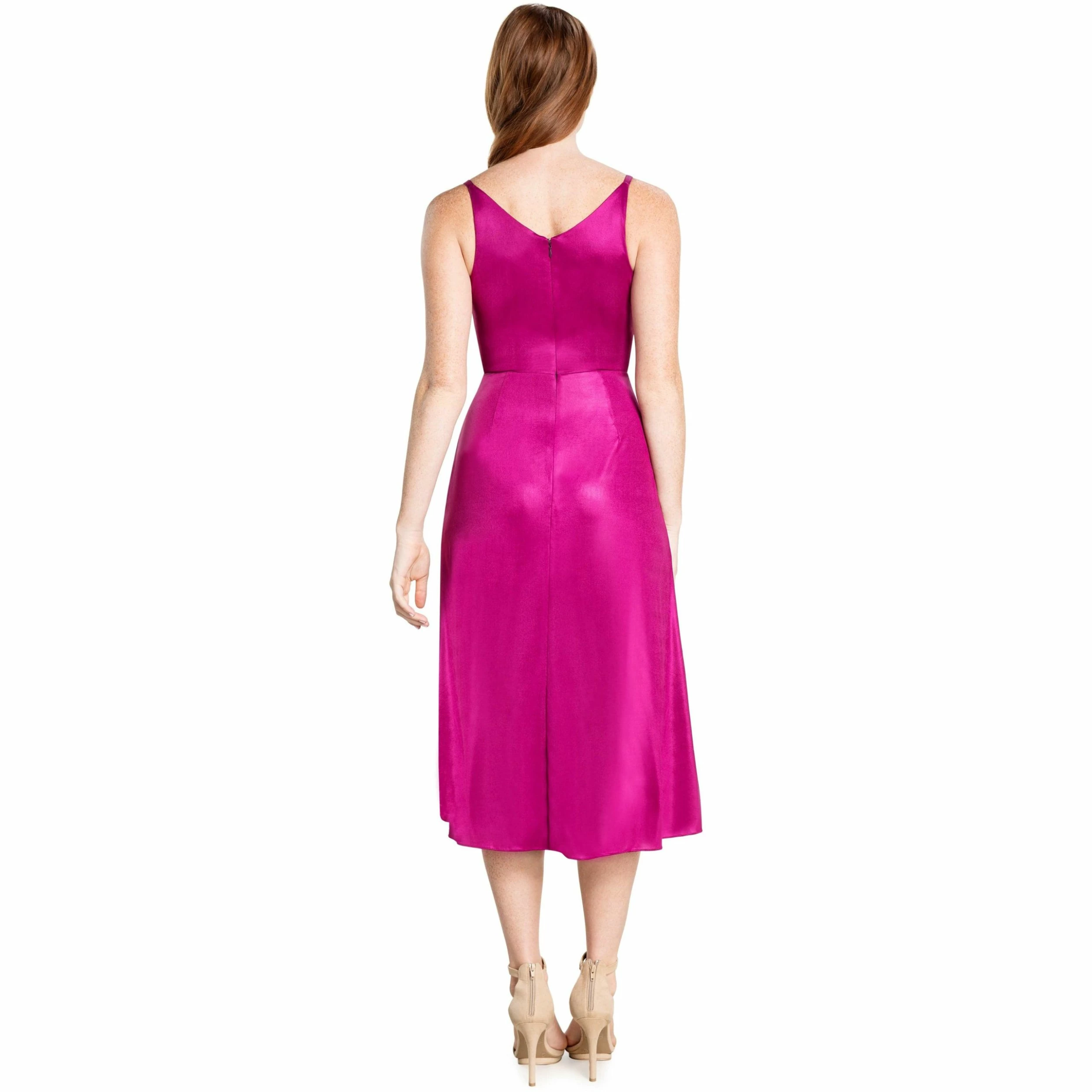 This bold pink fit and flare dress will turn heads and flatter your figure. Serafina is made from a gorgeous silky knit fabric, is partially lined, and features a plunging neckline. It even has pockets!Â